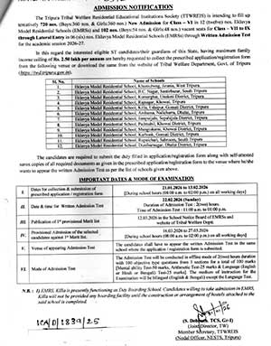 Admission Notification for Eklavya Model Residential Schools 2026-27