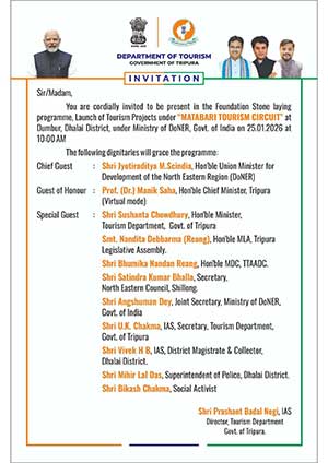 INVITATION: “MATABARI TOURISM CIRCUIT” at Dumbur, Dhalai District, under Ministry of DoNER, Govt of India on 25.01.2026 at 10.00 AM